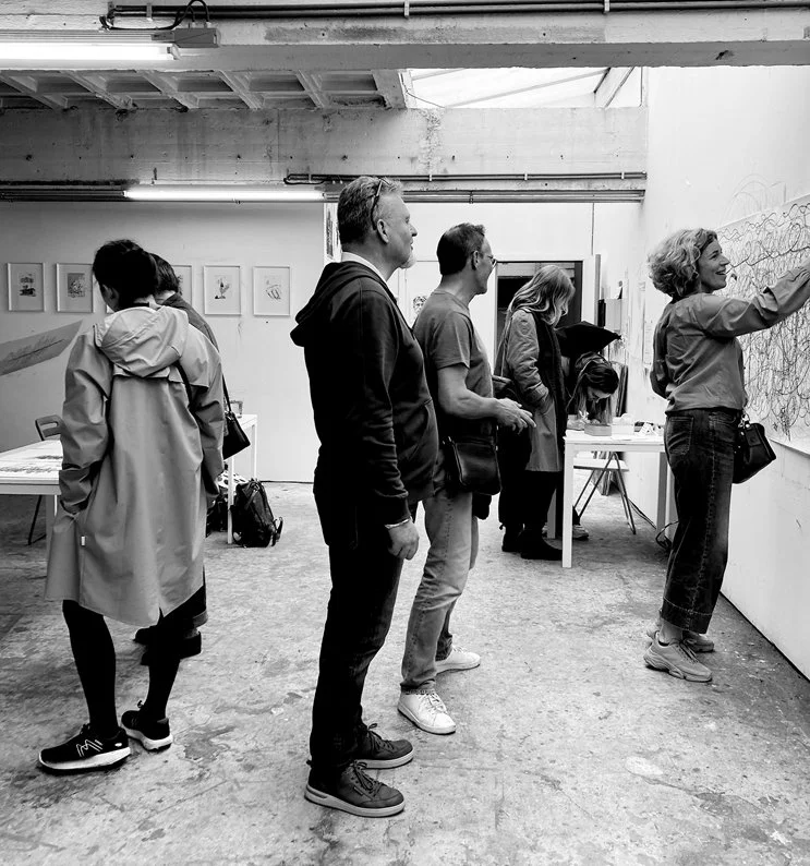 In mijn atelier kom ik op adem en draai de buitenwereld op slot. Het is mijn land van herkomst. Een grenzeloze tussenruimte waar ik telkens opnieuw thuiskom. Daar laat ik tijd en ruimte weer vrij, en mogen alle remmen los. Ik leef in het moment en sta open voor wat dan allemaal kan gebeuren.